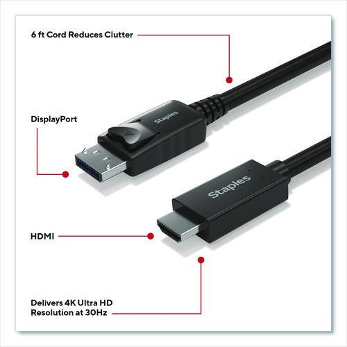 DisplayPort to HDMI Audio/Video Cable, 6 ft, Black