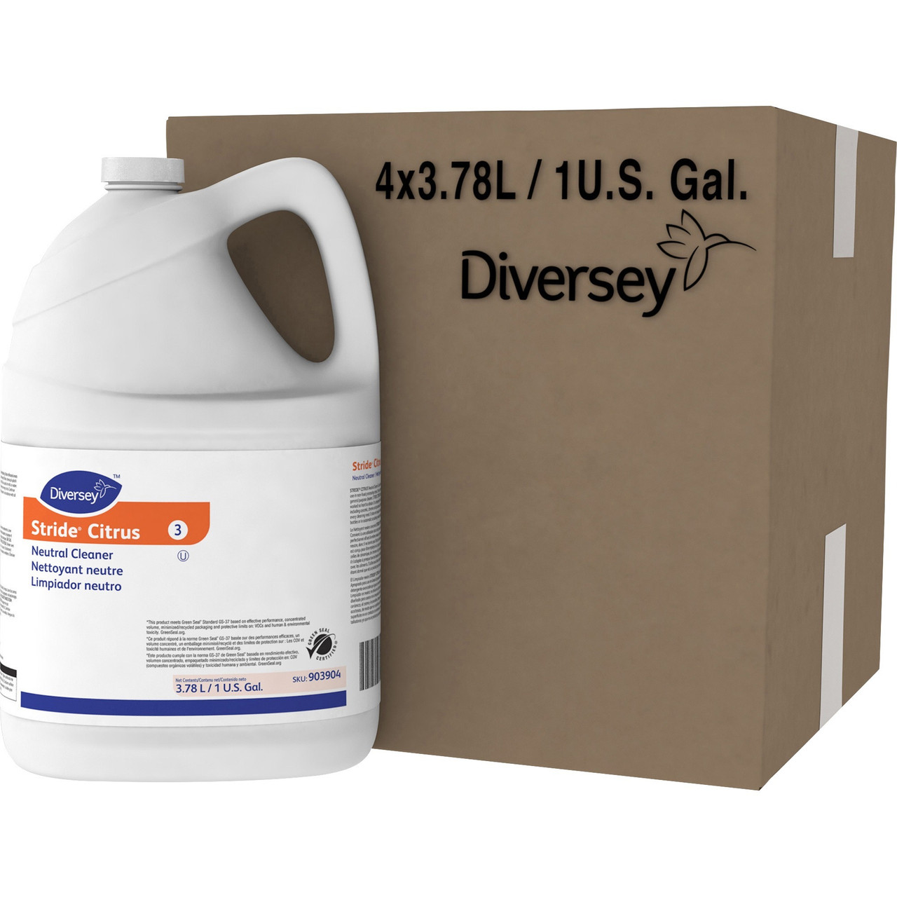 Diversey Stride Citrus Neutral Cleaner - Concentrate - 128 fl oz (4 quart) - Citrus Scent - pH Neutral, Non Alkaline, Low Foaming, Rinse-free, Film-free, Kosher - Orange - 4 / Carton
