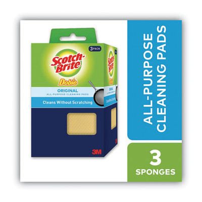 Dobie All-purpose Cleaning Pad, 4.3 X 2.6, 0.5" Thick, Yellow, 3/pack, 8 Packs/carton