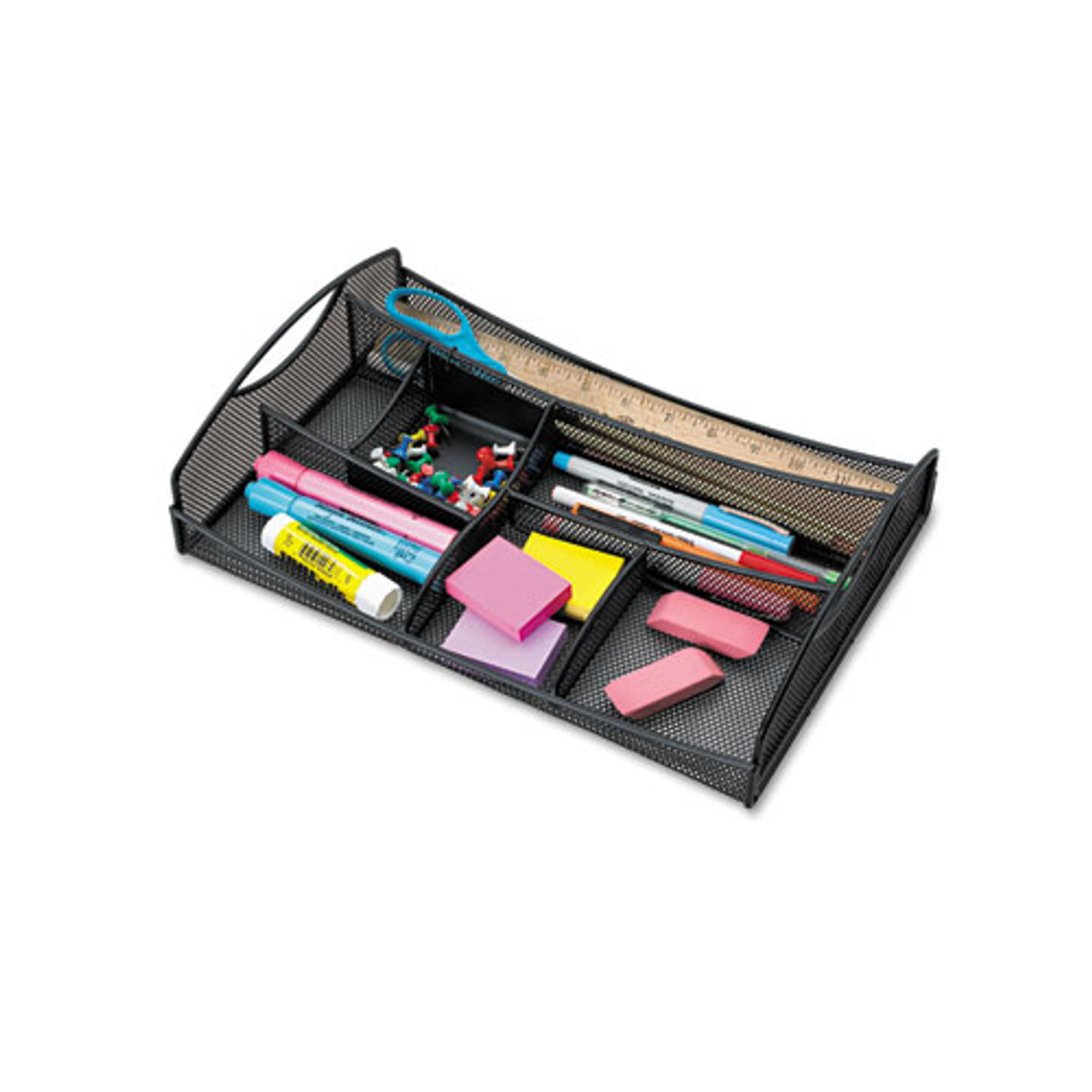 Onyx Mesh Drawer Organizer, Seven Compartments, 13 X 8.75 X 2.75, Steel, Black