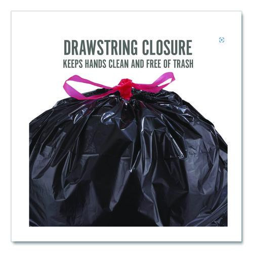 Drawstring Heavy-Duty Trash Bags, 33 gal, 1.1 mil, 37" x 33", Black, 30/Box