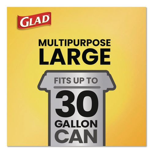 Glad® Drawstring Trash Bags are Guaranteed Strong for heavy-duty jobs, indoors or out. These 30 gallon black trash bags have 50% better tear resistance, 20% more puncture resistance and have a stronger drawstring versus the leading brand. Perfect for outdoor yard work and garage use, these garbage bags are tough enough for all occasions and are great for use throughout the workplace or home. The strong drawstring makes closing and carrying easy. Just pull the drawstring to enclose the trash, lift and toss into garbage. Ideal for use in restaurants, cafeterias, janitorial, and other commercial facilities. You can count on Glad® bags to contain your messiest trash.