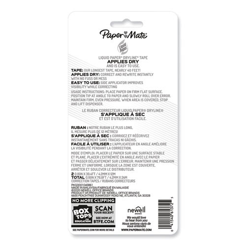 Dryline Correction Tape, Non-refillable, 1/6" X 472", 2/pack