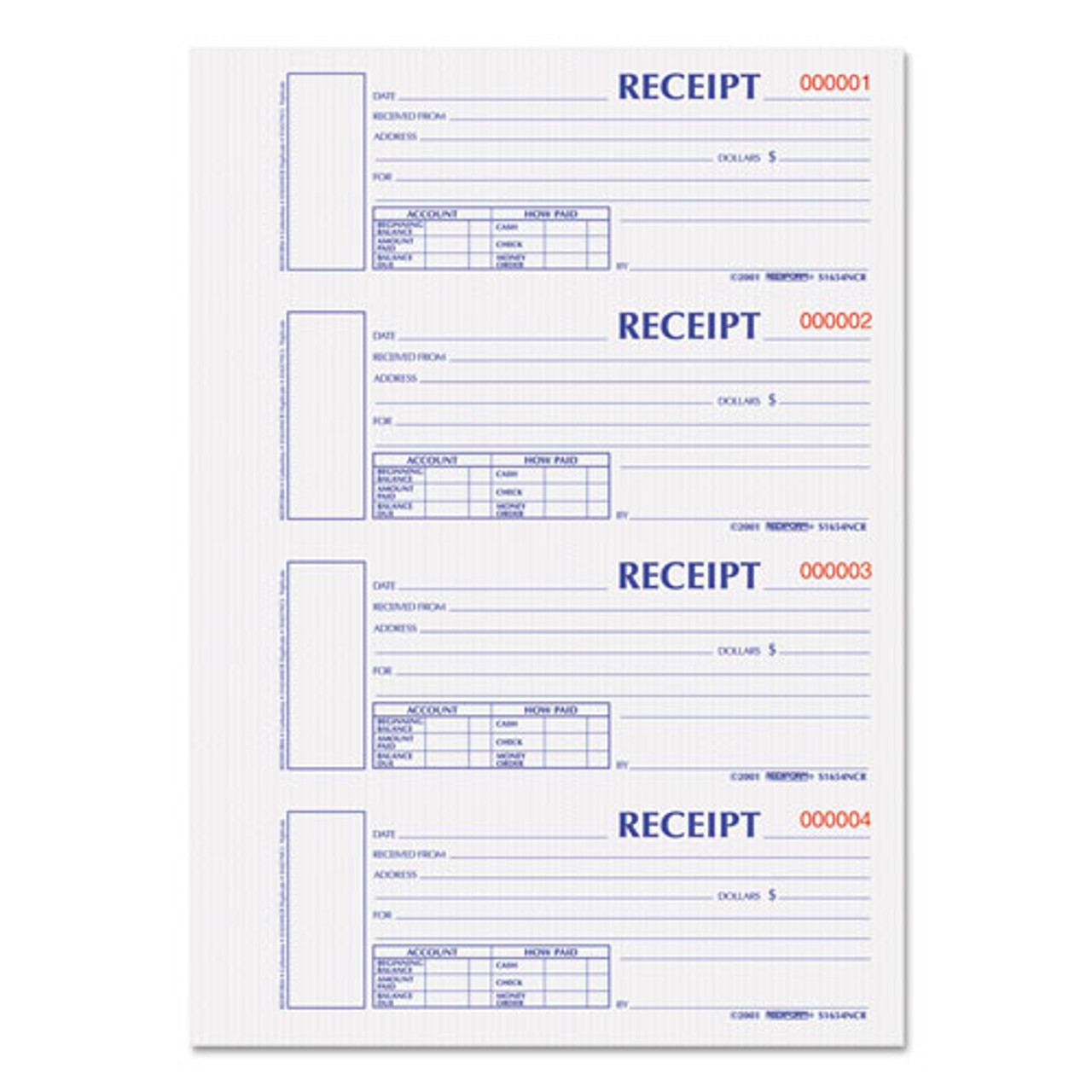 Durable Hardcover Numbered Money Receipt Book, Two-part Carbonless, 6.88 X 2.75, 4 Forms/sheet, 300 Forms Total