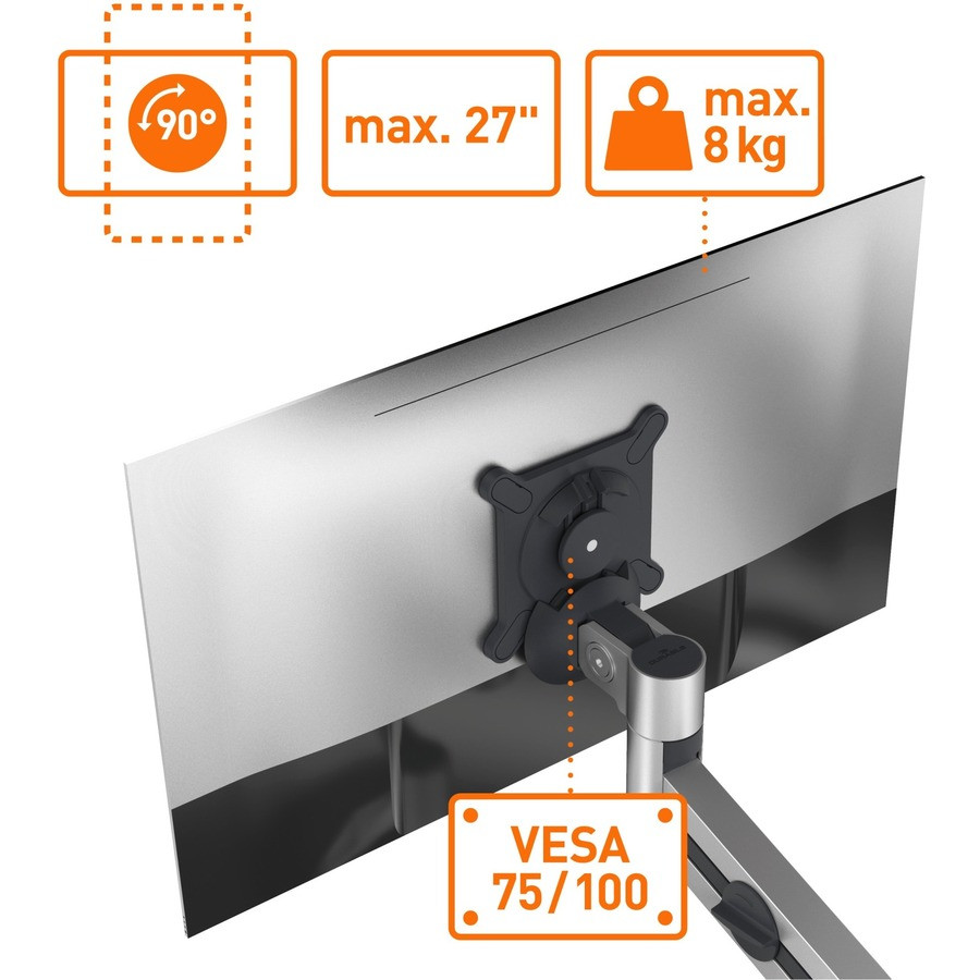 DURABLE Mounting Arm for Monitor - Silver - Height Adjustable - 1 Display(s) Supported - 38" Screen Support - 17.64 lb Load Capacity - 75 x 75, 100 x 100 - Aluminum, Plastic - 1 Each