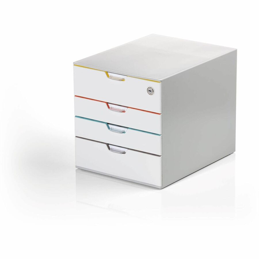 DURABLE Varicolor Safe Mix 4, White/Multicolor - 4 Drawer(s) - 11" Height x 11.50" Width x 14" Depth - Stackable - Lockable, Removable Drawer, Plastic Feet, Anti-slip, Pull-out Drawer, Storage Drawer, Locking Drawer, Non-slip, Recessed Handle, Sta...