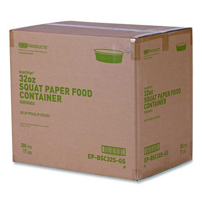 Choose Options Eco-Products® GreenStripe Paper Food Containers, 32 oz, 7.28" dia x 2.48", White, 300/Carton Choose Eco-Products® Compostable GreenStripe PLA-Lined Paper Food Containers for a sustainable solution to food service. These disposable containers are made from renewable, plant-based materials and... Choose Options