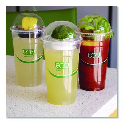 Choose Options Eco-Products® GreenStripe Cold Cup Dome Lids, No Hole, Fits 9 oz to 24 oz Cold Cups, Plastic, Clear, 100/Pack, 10 Packs/Carton Crafted from PLA, a plant-based plastic, these cup lids are both renewable and compostable. Made from annually regrown crops, they offer a sustainable alternative to traditional plastics. Once used,... Choose Options