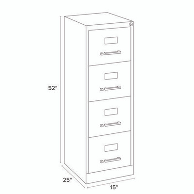 Economy Vertical File, 4 Letter-size File Drawers, Black, 15" X 25" X 52"