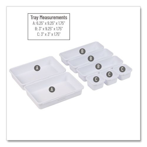 | Package Includes: | (2) Large Storage Bins; (3) Medium Storage Bins; (3) Small Storage Bins |