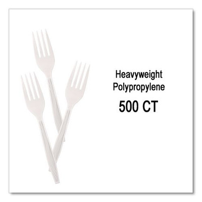 Elegant Dinnerware Heavyweight Cutlery, Fork, Plastic, White, 500/Box