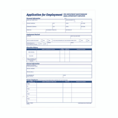 Employee Application Form, 8.38 X 11, 1/page, 50 Forms/pad, 2 Pads/pack