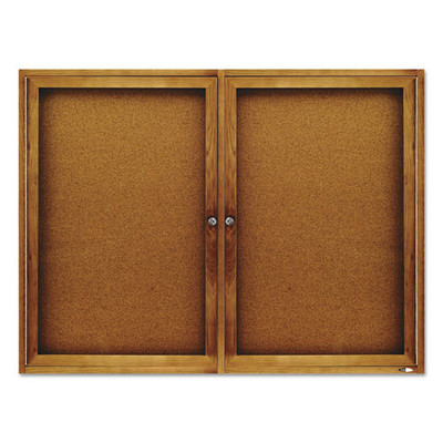 Enclosed Bulletin Board, Fabric/cork/glass, 48 X 36, Gray, Aluminum Frame