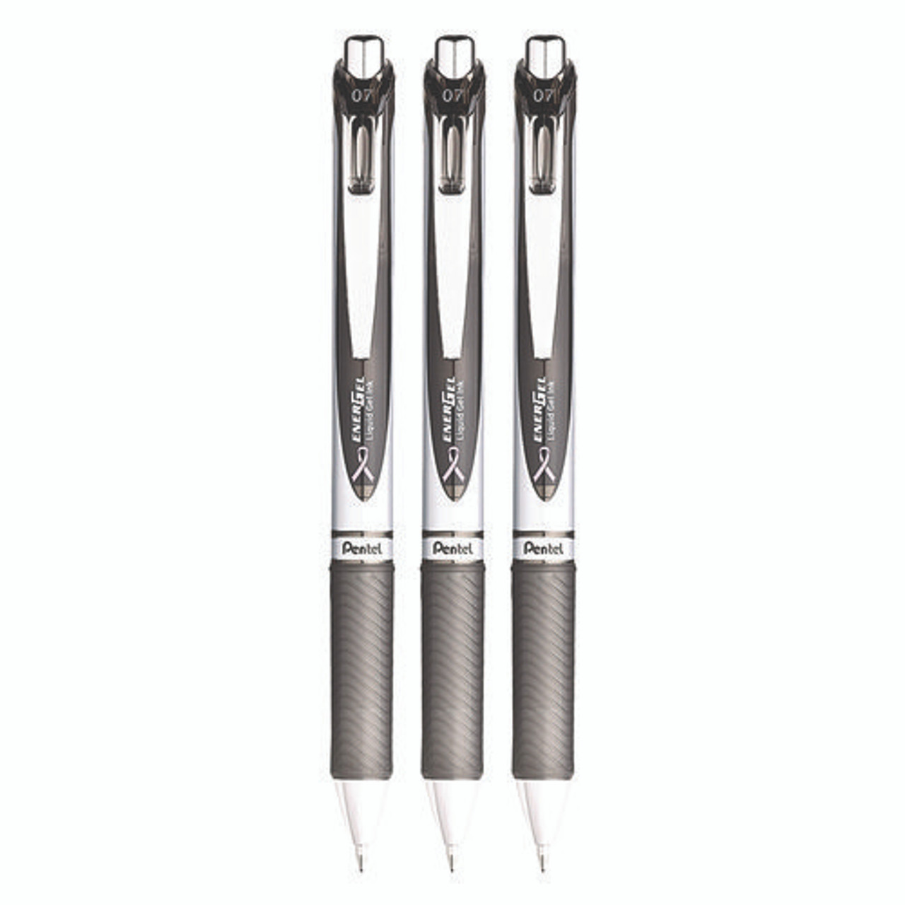 Energel Rtx Deluxe Gel Pen, Retractable, Medium 0.7 Mm, Black Ink, Black Barrel, 3/pack