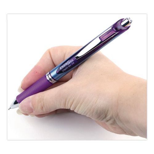 Energel Rtx Gel Pen, Retractable, Medium 0.7 Mm Needle Tip, Violet Ink, Violet/gray Barrel