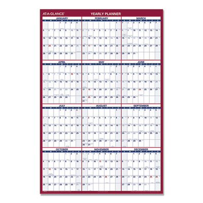 Erasable Vertical/horizontal Wall Planner, 24 X 36, White/blue/red Sheets, 12-month (jan To Dec): 2022