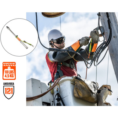 These Single Carabiner Tool Lanyards feature a single-action, aluminum carabiner and cinch loop to tether tools up to 10 lb. (4.5 kg.), preventing dropped or falling objects while at heights. Carabiner with captive eye predicts load direction to avoid carabiner/lanyard disconnection. Shock-absorbing, tubular nylon webbing and lock stitching add an extra layer of security at both ends. Lanyards are third-party certified for 10 lb. maximum capacity and meet ANSI/ISEA 121-2018 standard to prevent dropped objects. Lanyards extend 42" to 54". They are perfect for jobs involving heights including construction, telecommunication, oil/gas, power generation, utilities, wind energy, manufacturing and more.