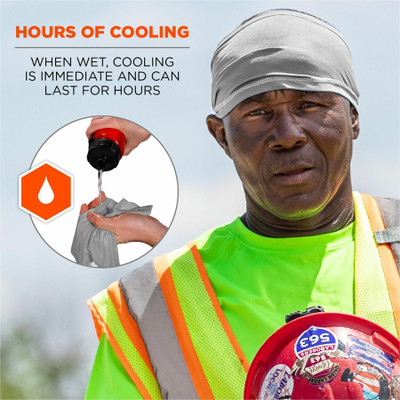 Chill-Its 6634 Cooling Headband is a low-profile wrap that wicks away sweat and moisture when worn dry and provides evaporative cooling relief when worn wet. Just soak in water until saturated and then wring out excess water for instant activation and cooling that lasts for hours when worn in environments with suitable airflow. Stretchy performance knit fabric and contoured design ensure a snug, comfortable fit on most head sizes. Low-profile design fits comfortably under a hard hat or helmet and is a great option for those with longer hair/ponytails. This skull wrap is rated to UPF 50+ for protection against the sun's harmful UV rays and features an anti-odor treatment for fresh all-day wear. Reflective accent enhances visibility in low-light conditions. Ideal for construction, landscaping, roofing or anyone working in the heat, machine-washable wrap can also be used to reduce the risk of heat stress for outdoor recreational activities.