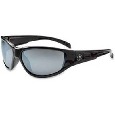 Ergodyne Njord Silver Mirror Lens Safety Glasses - Ultraviolet Protection - Black - Silver Mirror Lens - Durable, Flexible, Scratch Resistant - 1 Each
