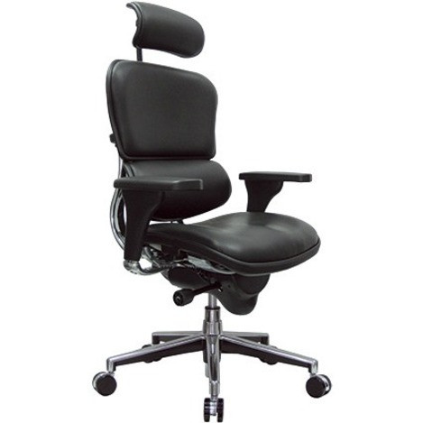 Ergohuman Executive Chair combines esthetics, form and function for total ergonomic comfort. Headrest helps prevent head, shoulder and neck pain caused from long periods of sitting. Set seat back in an angle for personalized comfort in reclined position. Raise or lower back height to support your lower back region. Seat-height adjustment sets seat height from 18" to 21-1/2" for your preferred position relative to floor. Seat depth slides relative to back for ultimate, customized seating. Padded, waterfall seat with sloping front reduces pressure on the back of the knees. Tilt-tension control with tilt lock allows you to adjust the recline rate based on your weight. Synchro-tilt back reclines in a preset ratio to seat. Depth-adjustable arms slide forward or backward for proper ergonomic positioning. Arm-height adjustment adjusts arm up or down while arm pads angle in or out. Leather-upholstered chair creates a soft, comfortable experience that adds a professional touch to any space.