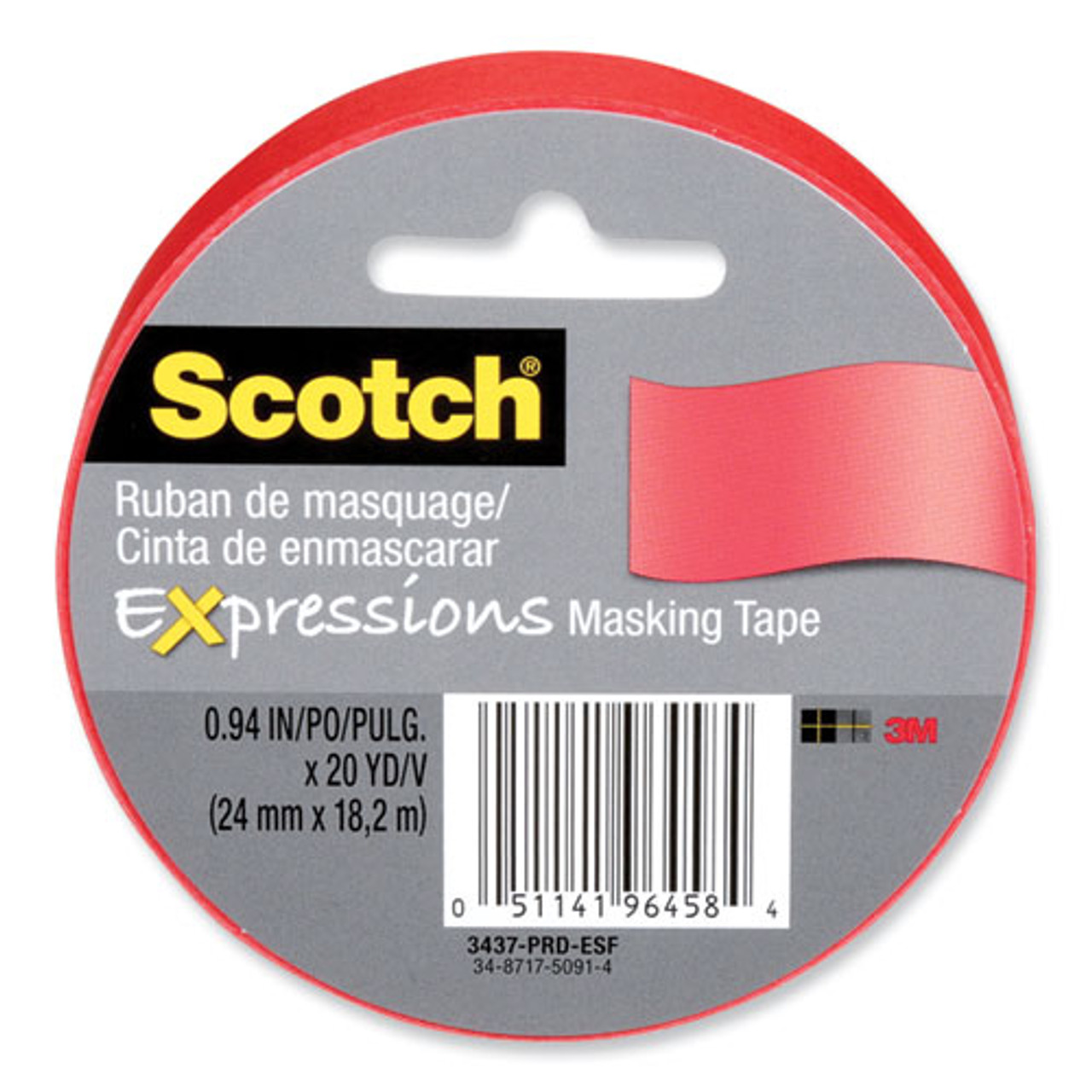 Expressions Masking Tape, 3" Core, 0.94" X 20 Yds, Primary Red