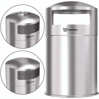 Extra-large Dual Side-entry Trash Can, Outdoor, 50 Gal, Stainless Steel, Silver