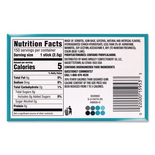 Extra Polar Ice Sugar-Free Gum, Polar Ice, 15 Sticks/Pack, 10 Packs/Carton
