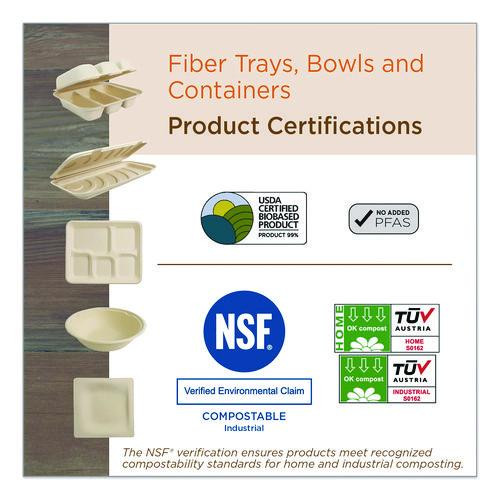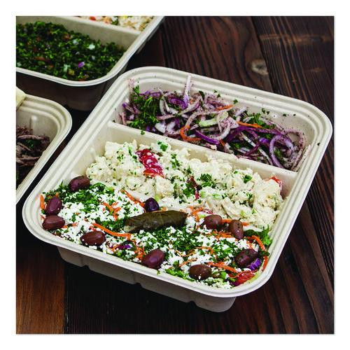 Fiber Catering Pans, 3 Compartments, 10.3 x 2.8 x 12.8, Paper, Natural, 200/Carton