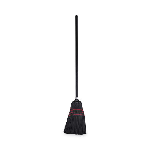 Flagged Tip Poly Bristle Janitor Brooms, 10 X 58.5, Wood Handle, Natural/black, 12/carton