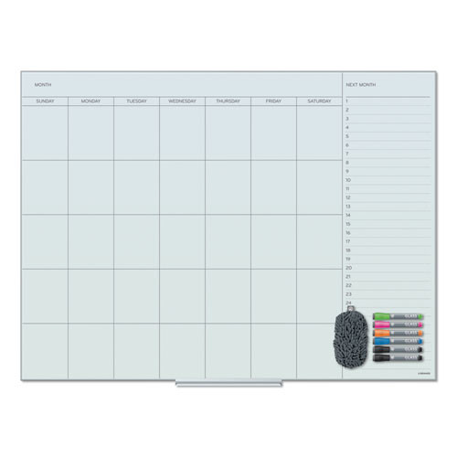 Floating Glass Dry Erase Undated One Month Calendar, 48 X 36, White