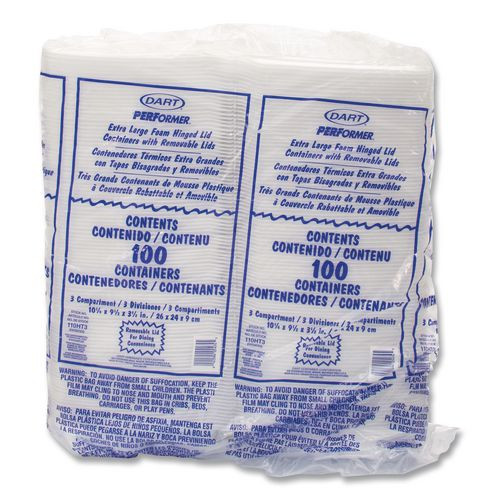 Foam Hinged Lid Containers, 3 Compartments, 9.5 x 10.26 x 3.4, White, 200/Carton