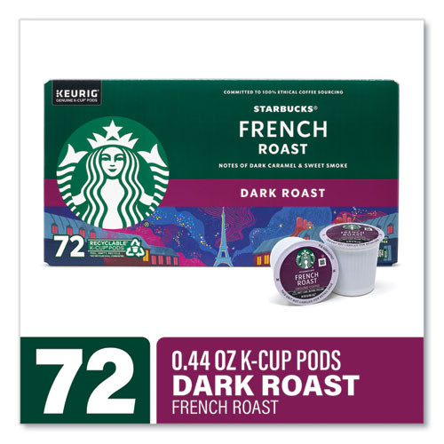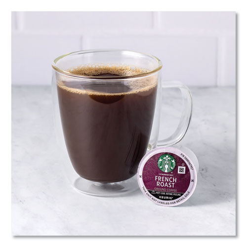 Enjoy a dark roast with intense and smoky flavors-Starbucks® darkest and boldest and not for the faint of heart. It starts with high-quality beans, which can withstand the intense fires that make French Roast what it is, that are then roasted to their edge. The result is a delectably smoky cup, with intense and uncompromising flavor. Convenient K-Cups® are designed for the Keurig® brewing system. Beverage Type: Coffee; Flavor: French Roast; Roast Type: Dark; Product Packaging: K-Cup®.