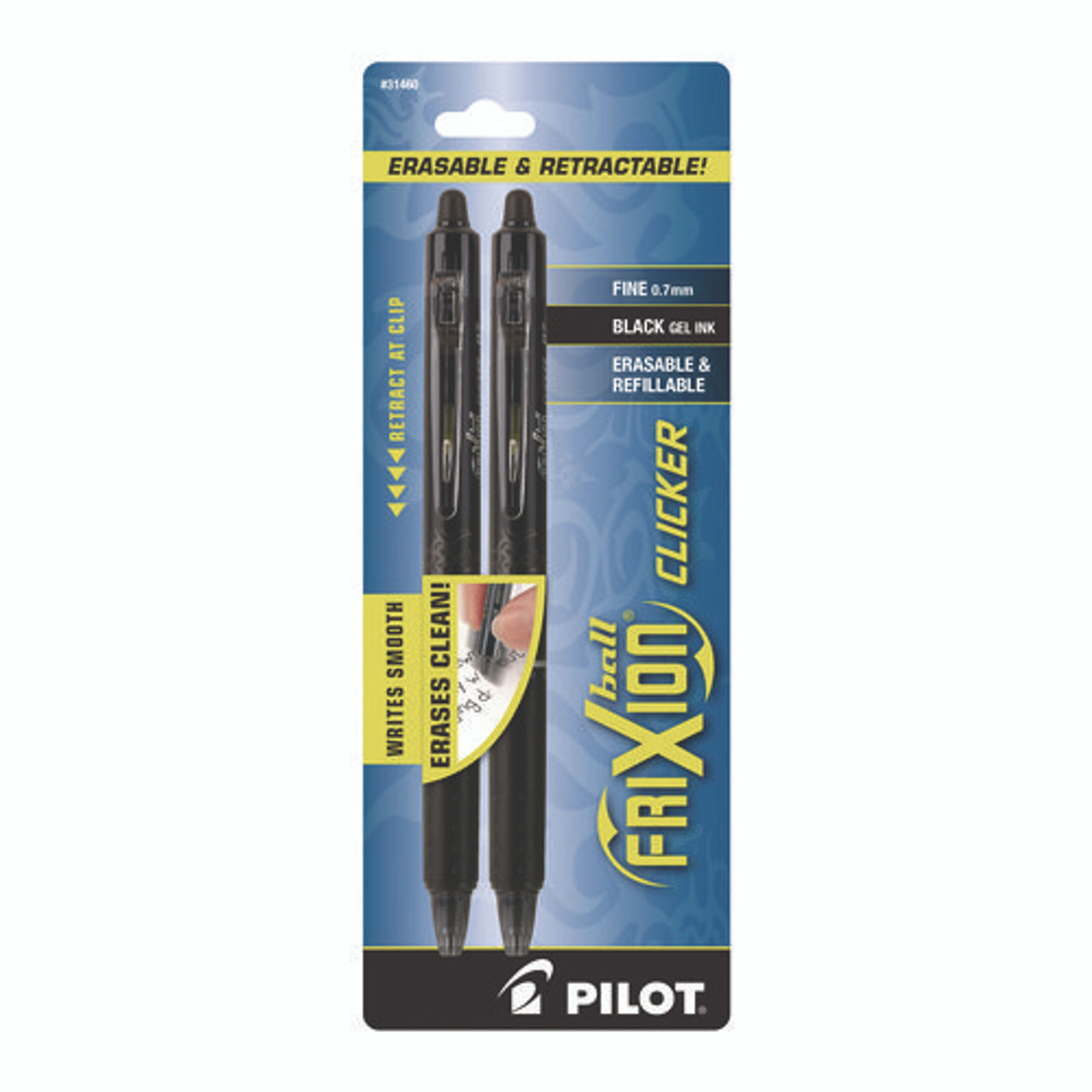 Frixion Ball Clicker Erasable Gel Pen, Retractable, Fine 0.7 Mm, Black Ink, Black Barrel, 2/pack