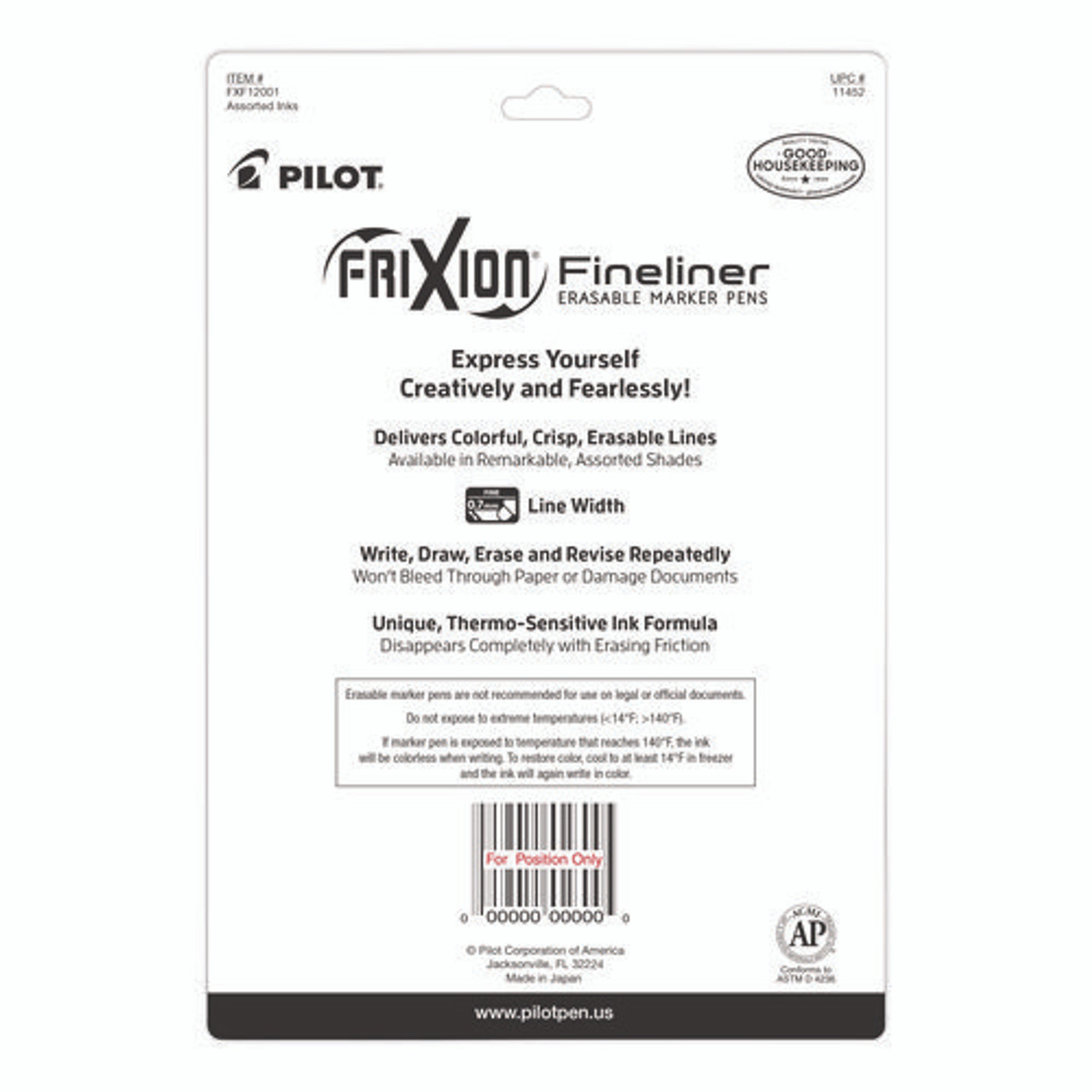 Frixion Fineliner Erasable Porous Point Pen, Stick, Fine 0.7 Mm, Assorted Ink, Assorted Barrel, 12/pack