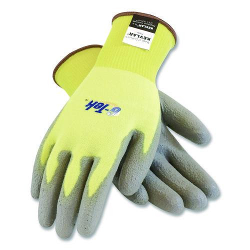 G-tek Kev Cut-resistant Seamless-knit Gloves, Large (size 9), Yellow/gray, 12 Pairs