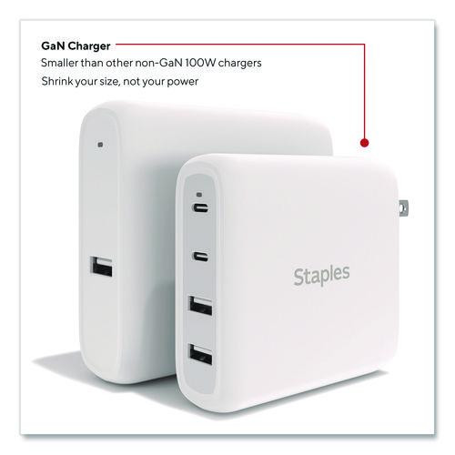 GaN USB-A/USB-C Wall Charger with Cable, 100 W, 4 Ports, White
