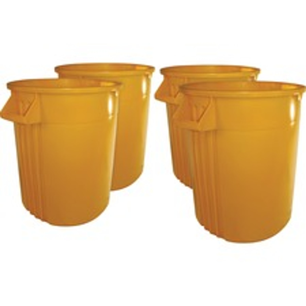 Gator Plus 44-gallon Container - 44 gal Capacity - Round - Impact Resistant, Crush Resistant, Handle - 31.5" Height x 23.1" Width - Polyethylene Resin, Plastic - Yellow - 4 / Carton