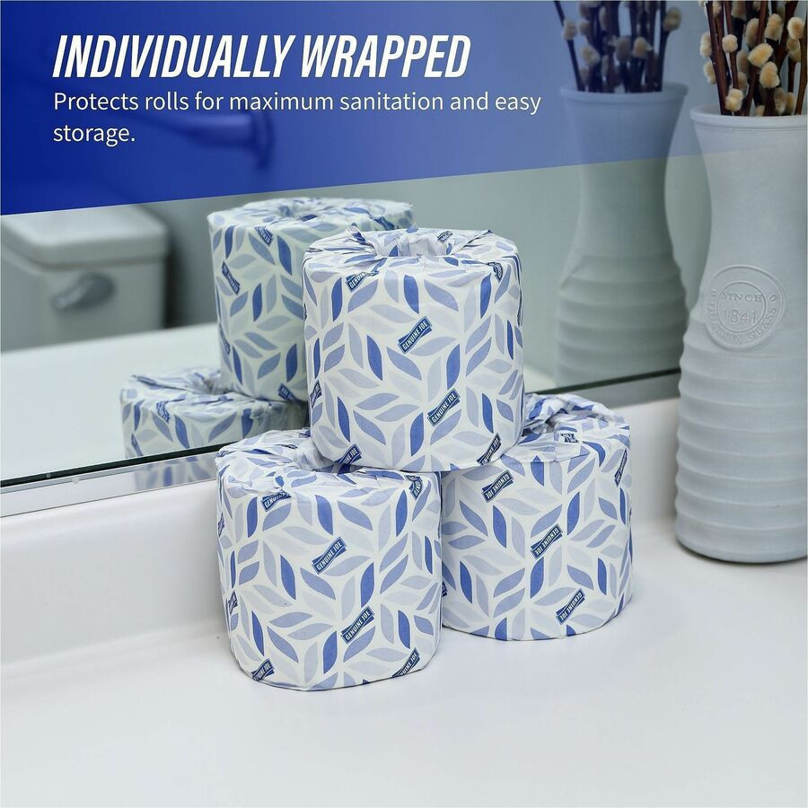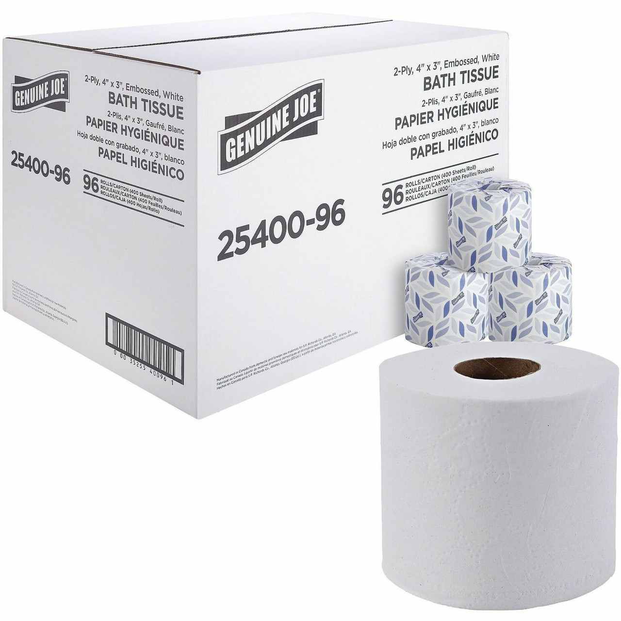 Genuine Joe 2-ply Standard Bath Tissue Rolls - 2 Ply - 3" Width x 4" Length - 400 Sheets/Roll - 1 5/8" Core - White - 96 / Carton