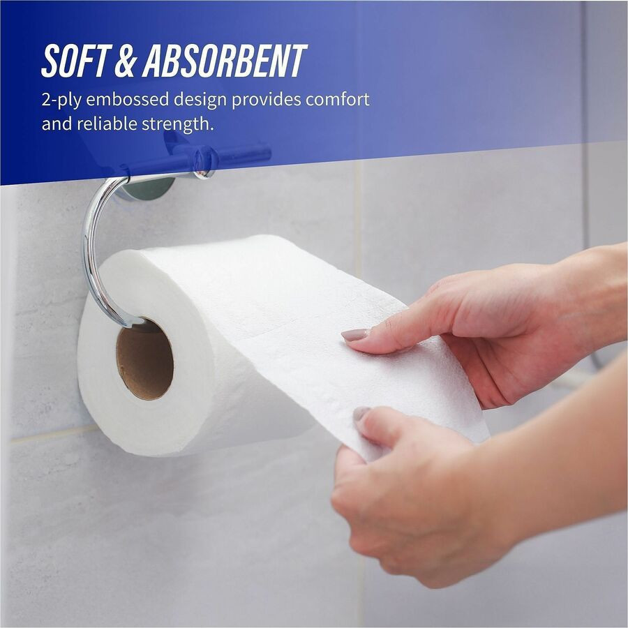 Embossed bath tissue offers two-ply sheets that are securely overall-wrapped for maximum sanitation. Perforated tissue offers exceptional whiteness, absorbency and softness and is suited for restroom applications. Each roll fits standard-roll, bathroom-tissue dispensers. Tissue is made from a high percentage of recycled fiber with post-consumer material that easily exceeds EPA guidelines.