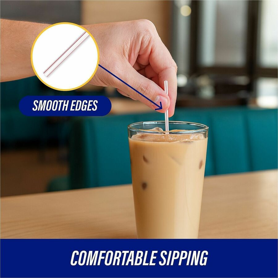 Use these convenient stir sticks to perfect your coffee with cream or your tea with honey. Versatile design means they can be used in hot or cold beverages. The hollow plastic tube doubles as a straw for even more versatility. Each stick is 5-1/2" long.