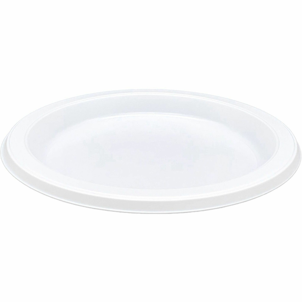 Genuine Joe 7" Disposable Plastic Plates - Picnic, Party, Breakroom - Disposable - White - Plastic Body - Round - 125/Pack - 8 / Carton