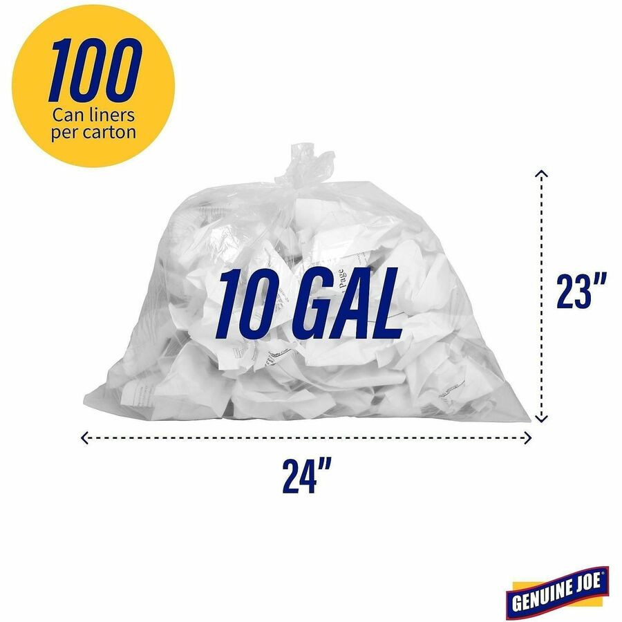 Genuine Joe Clear Trash Can Liners - Small Size - 10 gal Capacity - 23" Length x 24" Width x 0.60 mil (15 Micron) Thickness - Low Density - Clear - 25/Roll - 20 / Carton