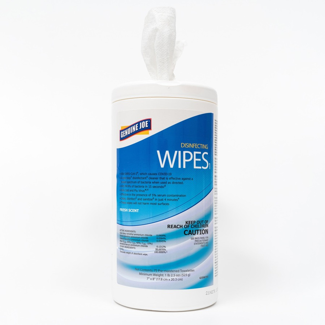 Genuine Joe Disinfecting Wipes - Ready-To-Use - Fresh Citrus Scent - 8" Length x 7" Width - Pre-moistened, Strong, Absorbent - White - 75/Tub - 6 / Carton