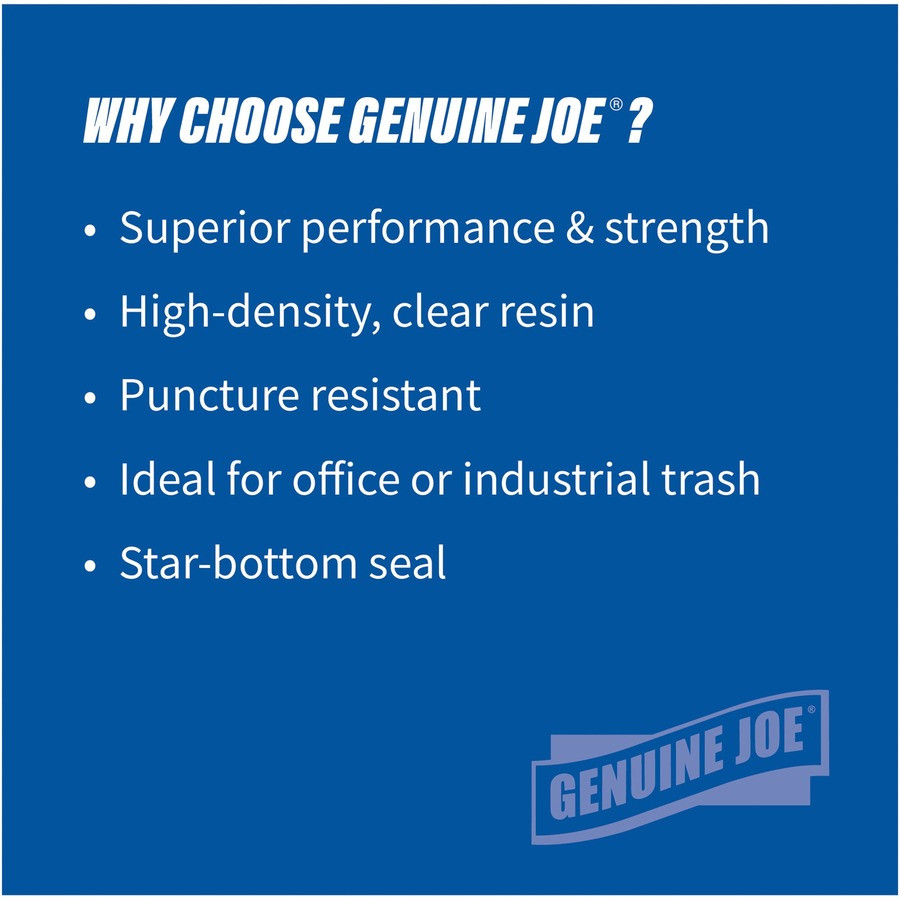 Genuine Joe High-density Can Liners - Extra Large Size - 56 gal Capacity - 48" Length x 43" Width x 0.63 mil (16 Micron) Thickness - High Density - Clear - Resin - Office Waste, Industrial Trash - 20/Roll - 10 / Carton