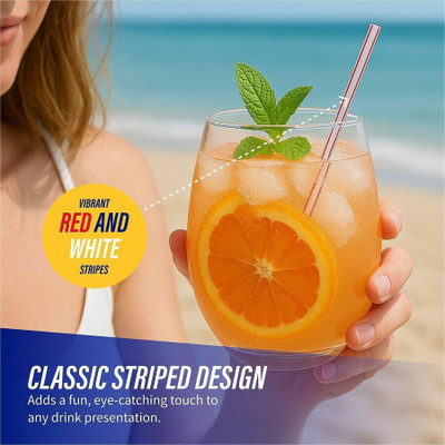 Genuine Joe Jumbo Striped Straws - 7.8" Length - Plastic - Red, White - 500/Box - 24 / Carton