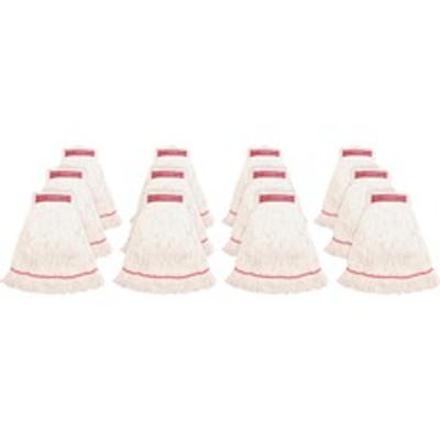 Genuine Joe Narrow Band Medium Mophead - Rayon, Cotton - White - 12 / Carton