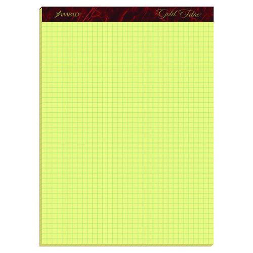 Gold Fibre Canary Quadrille Pads, Stapled With Perforated Sheets, Quadrille Rule (4 Sq/in), 50 Canary 8.5 X 11.75 Sheets