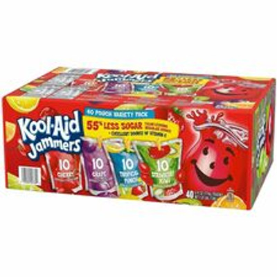 Green Rabbit Kool-Aid Jammers Variety Pack - Cherry, Grape, Strawberry Kiwi, Trop Punch - 40 / Carton