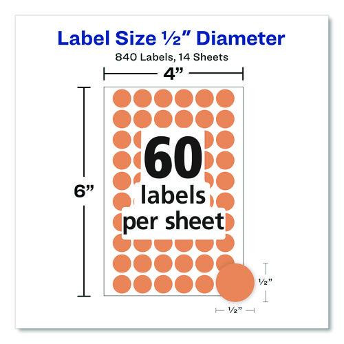 Handwrite Only Self-adhesive Removable Round Color-coding Labels, 0.5" Dia., Neon Orange, 60/sheet, 14 Sheets/pack, (5062)