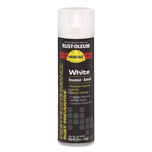 Hard Hat High Performance V2100 System Rust Preventive Enamel Spray Paint, Flat White, 15 Oz Aerosol Can, 6/carton